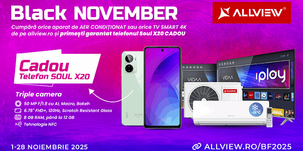 Toată luna noiembrie, Allview aduce clienților oferte speciale, cadouri surpriză și reduceri atractive pe allview.ro/bf2025/. Campania se va derula în perioada 01 – 28 noiembrie 2025. Orice model de Smart TV Allview cu rezoluție 4Kachiziționat în perioada campaniei, aduce CADOU…