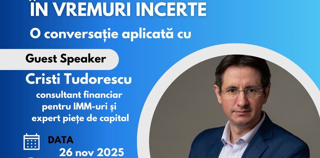 Invitatul special al întâlnirii este Cristi Tudorescu, consultant financiar pentru IMM-uri și expert în piețe de capital, cunoscut pentru experiența sa în consilierea companiilor privind strategiile financiare sustenabile și adaptarea la contextul economic actual.